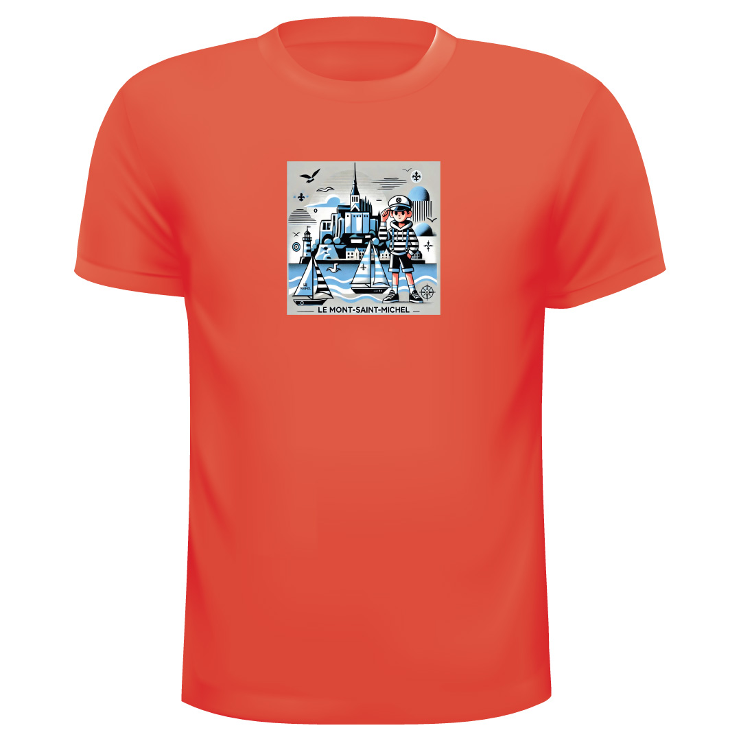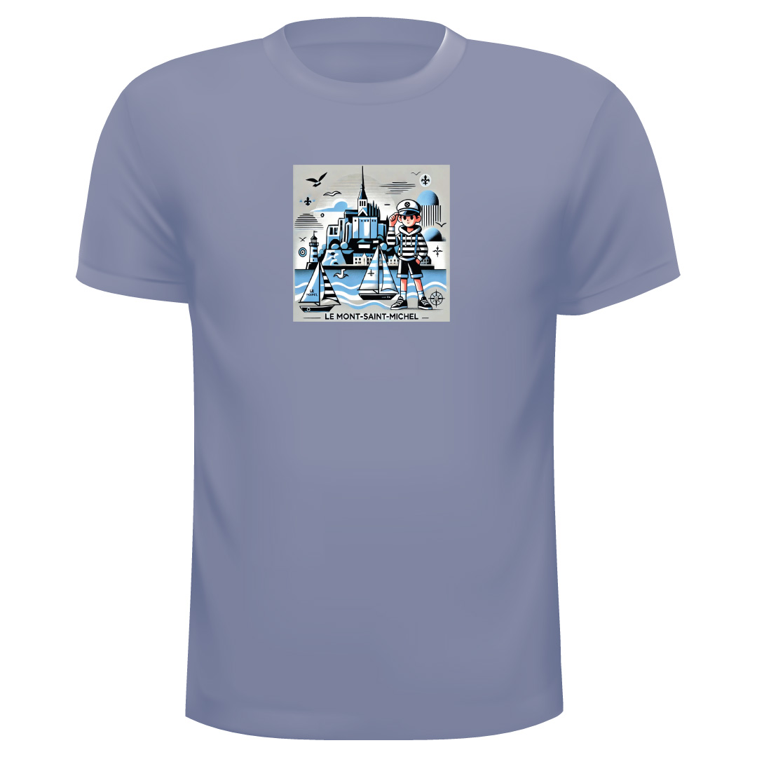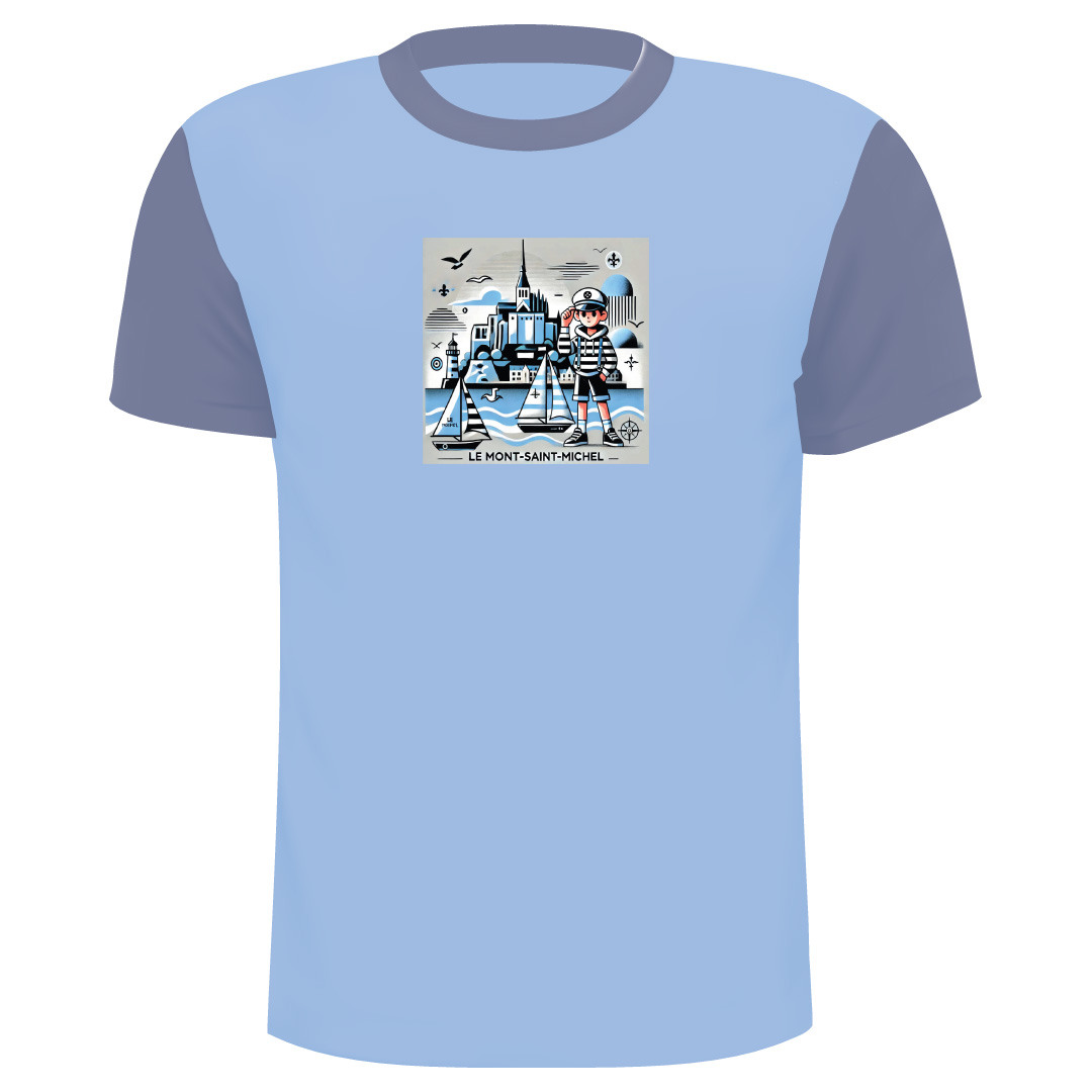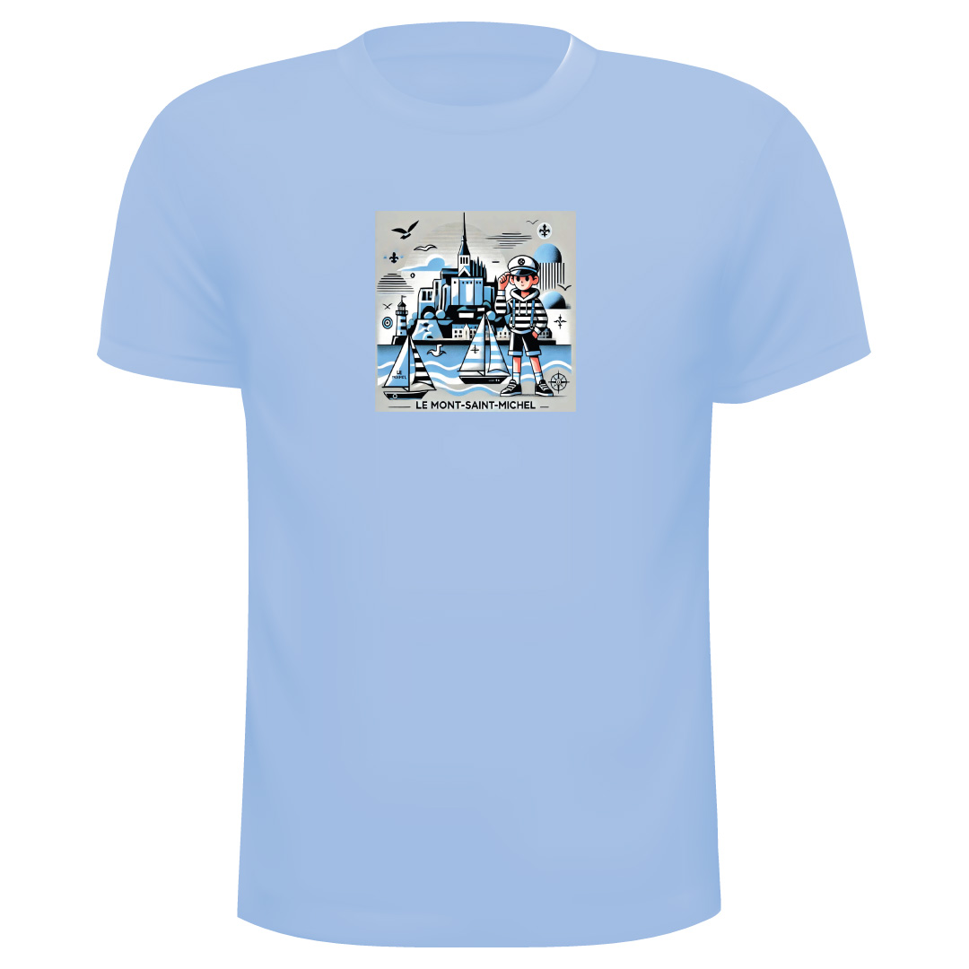 T-Shirt Mont ST Michel Ref 12, 100% Coton avec les couleurs suivantes : Ciel – Marine, Rouge, Ciel, Marine