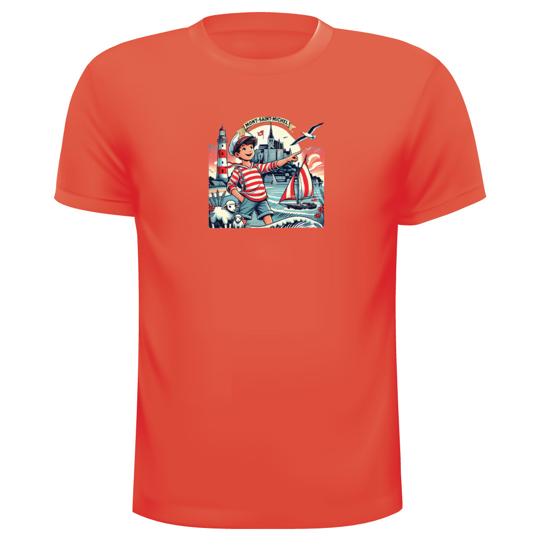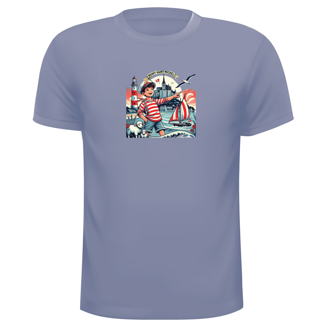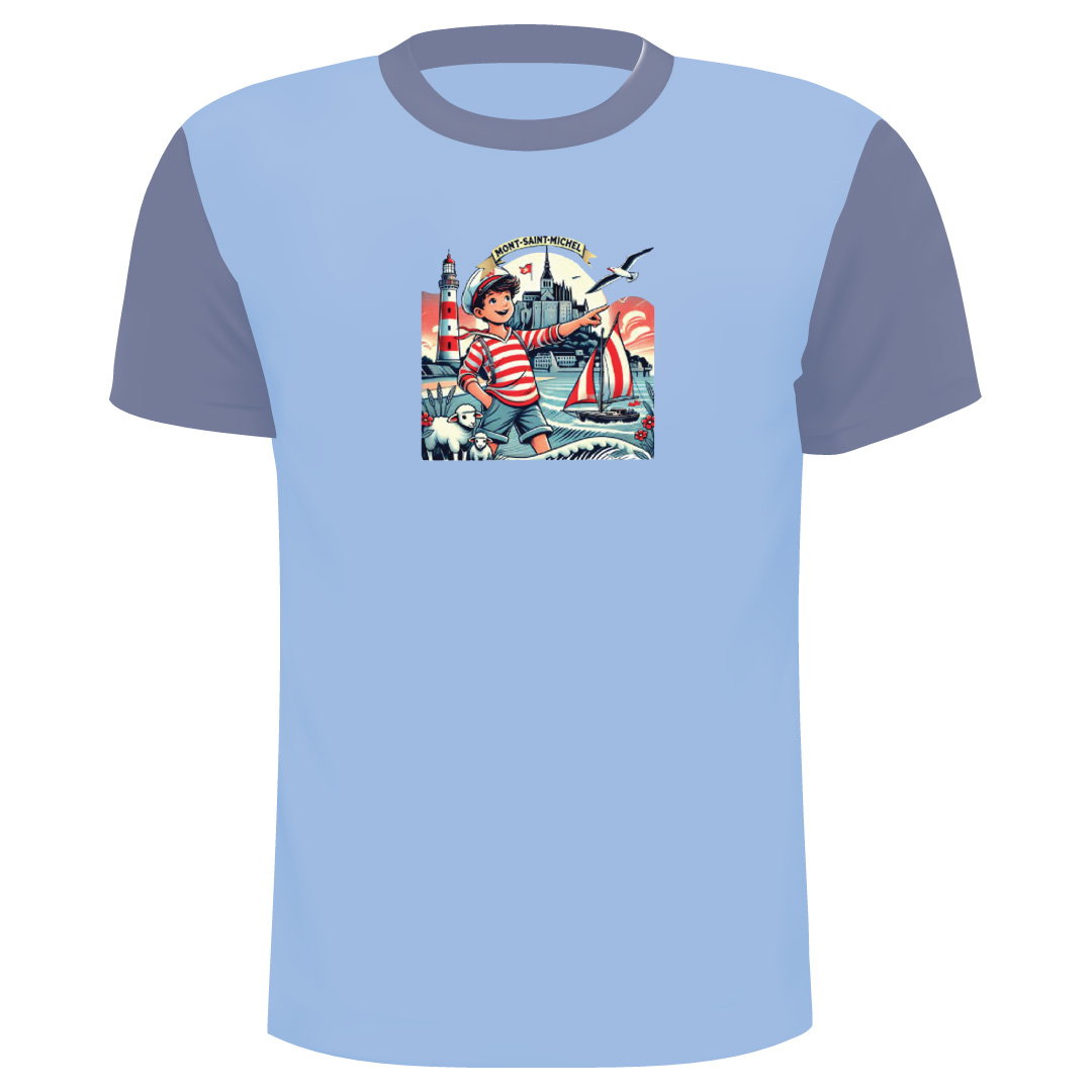 T-Shirt Mont ST Michel Ref 13, 100% Coton avec les couleurs suivantes : Ciel – Marine, Rouge, Ciel, Marine