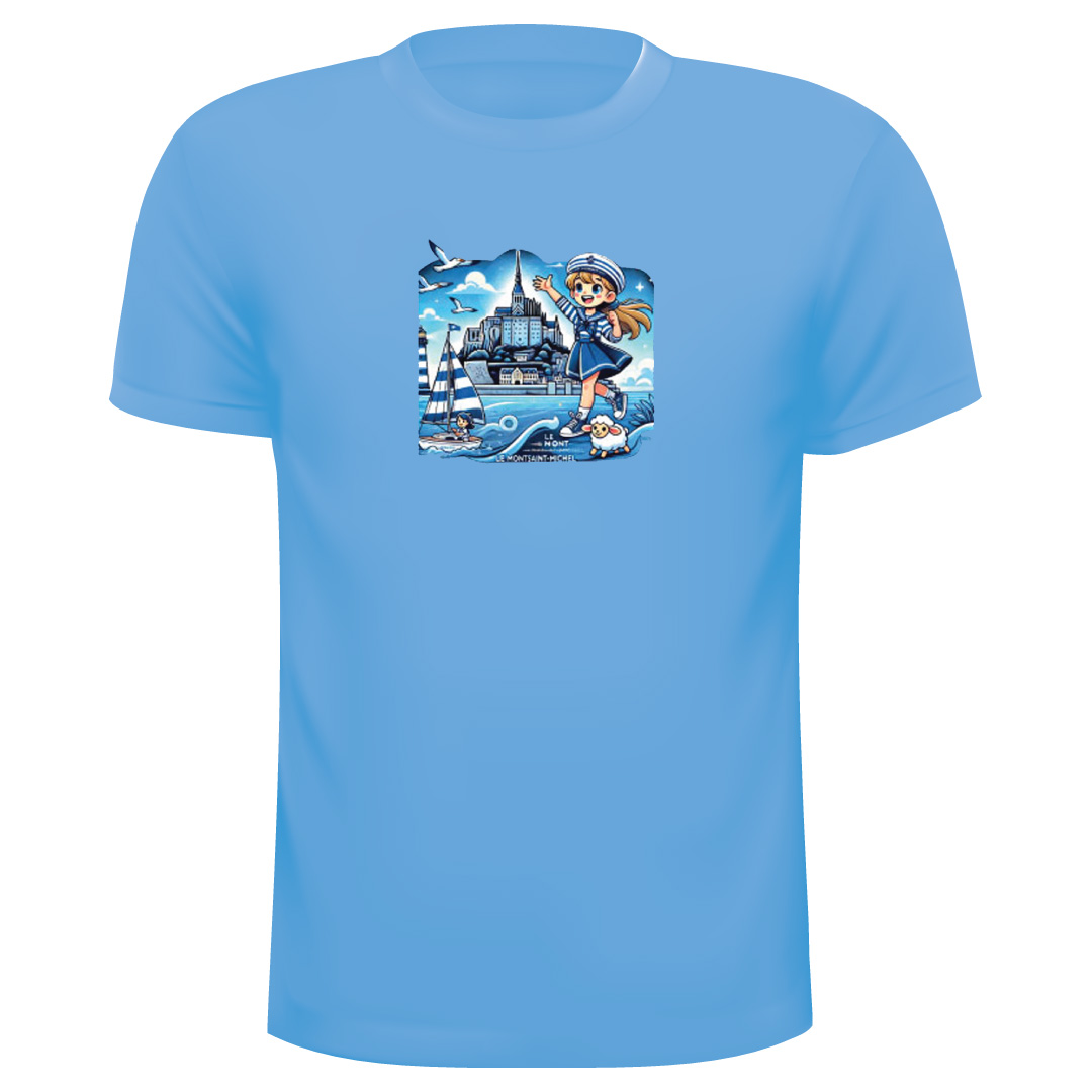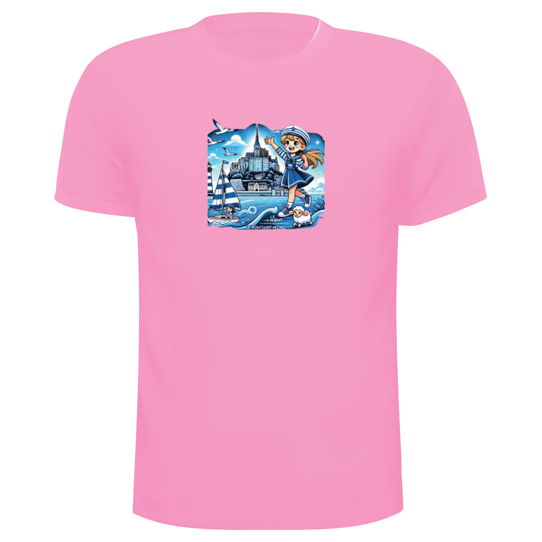 T-Shirt Mont ST Michel Ref 14, 100% Coton avec les couleurs suivantes : Marine, Rouge, Turquoise, Ciel, Blanc, Rose
