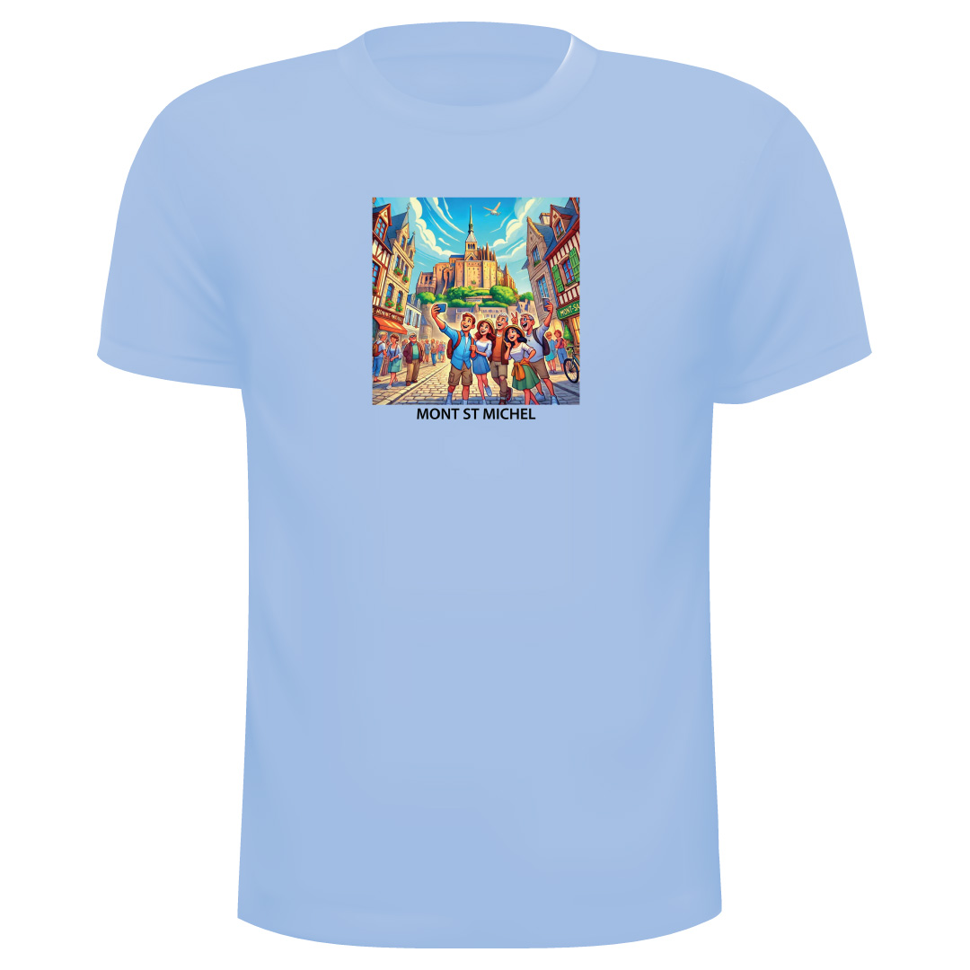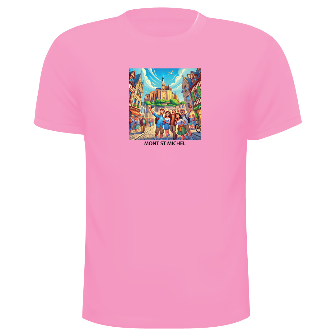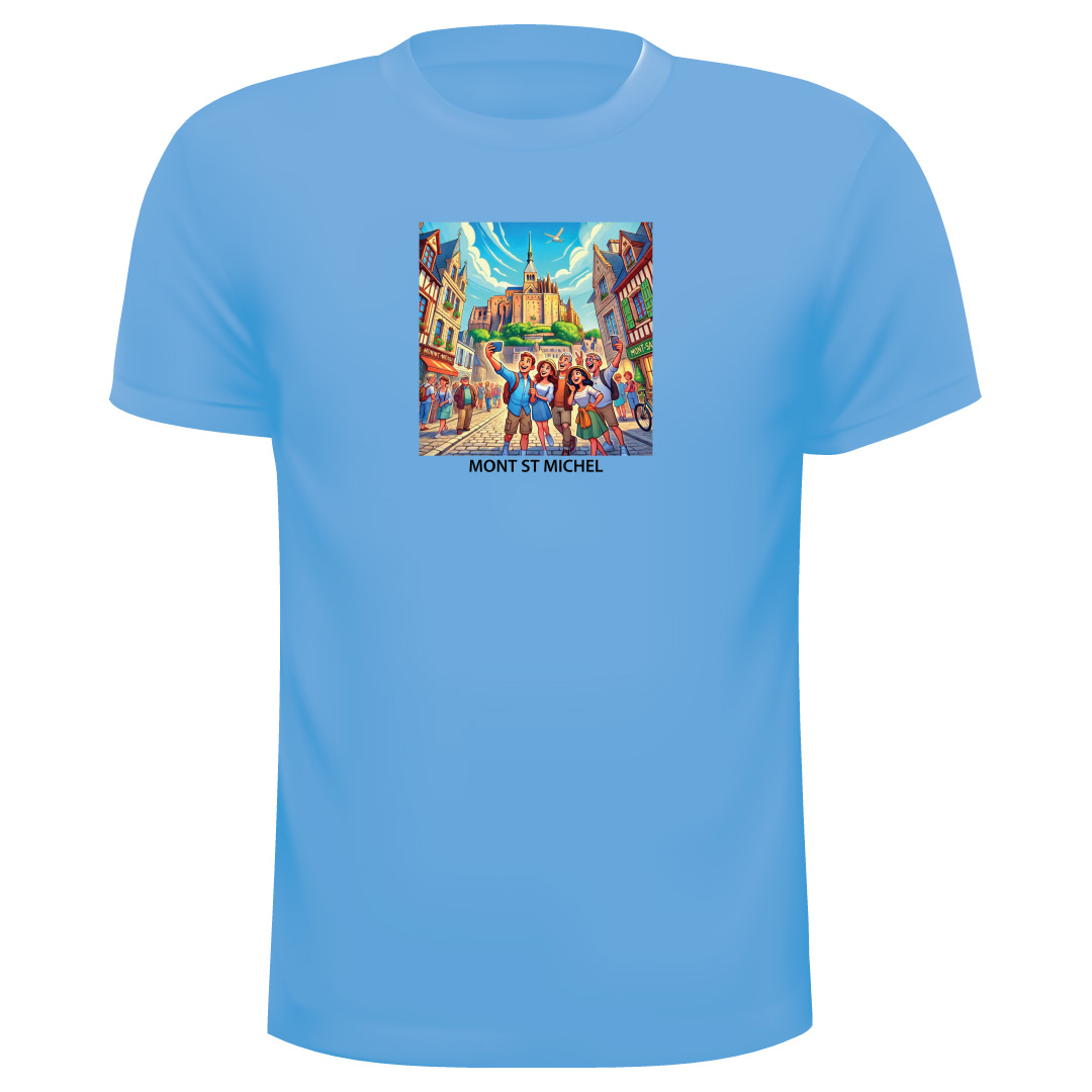 T-Shirt Mont ST Michel Ref 17, 100% Coton avec les couleurs suivantes : Ciel, Rouge, Turquoise, Rose, Jaune, Orange