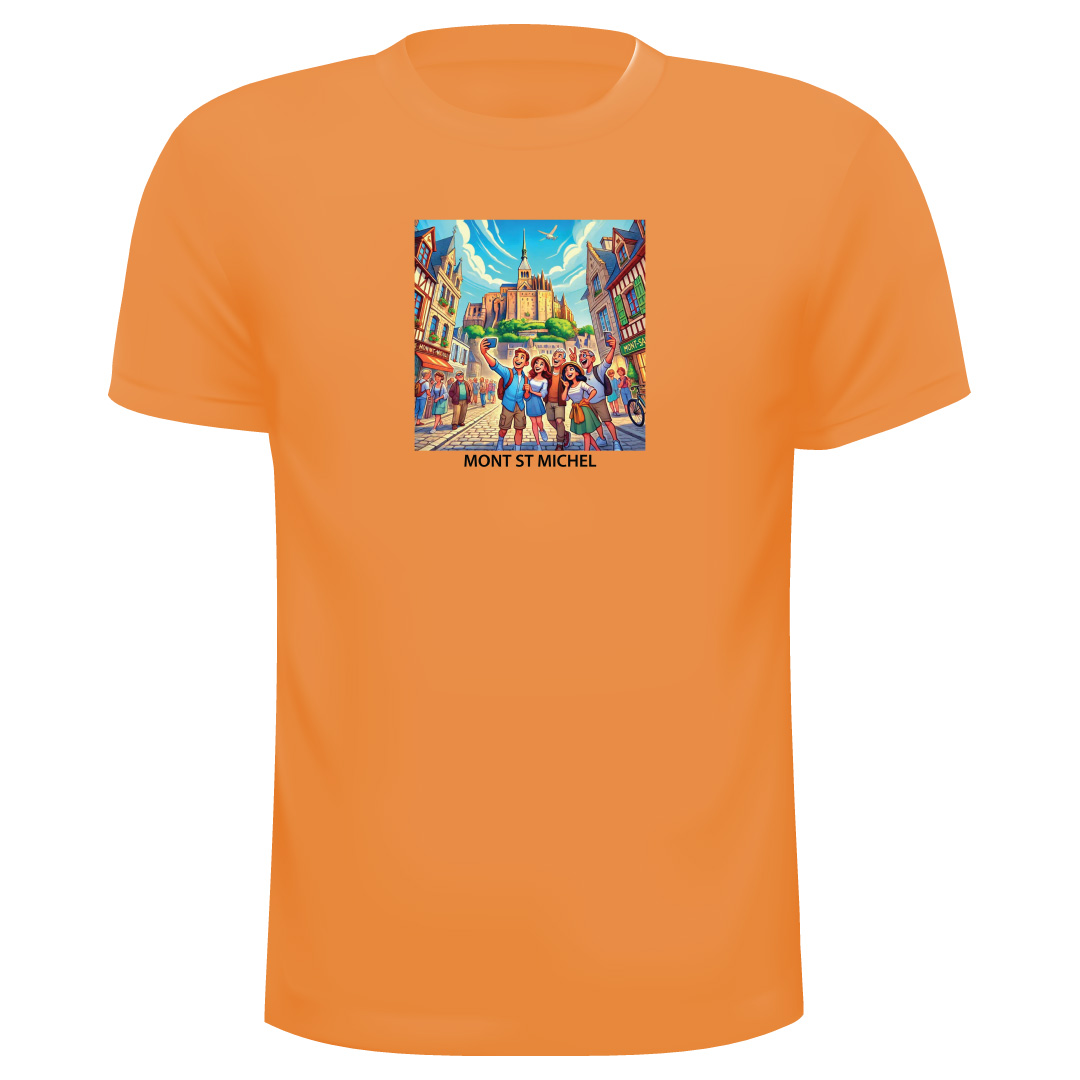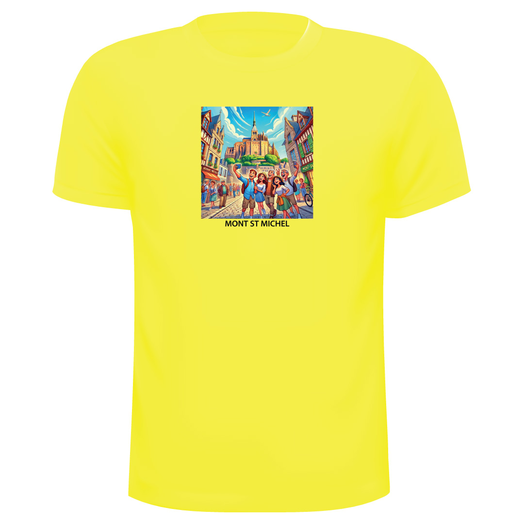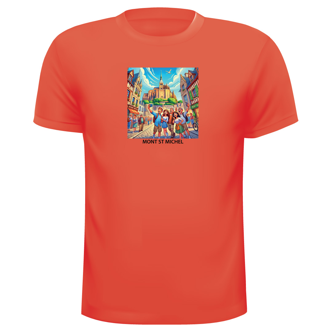 T-Shirt Mont ST Michel Ref 17, 100% Coton avec les couleurs suivantes : Ciel, Rouge, Turquoise, Rose, Jaune, Orange