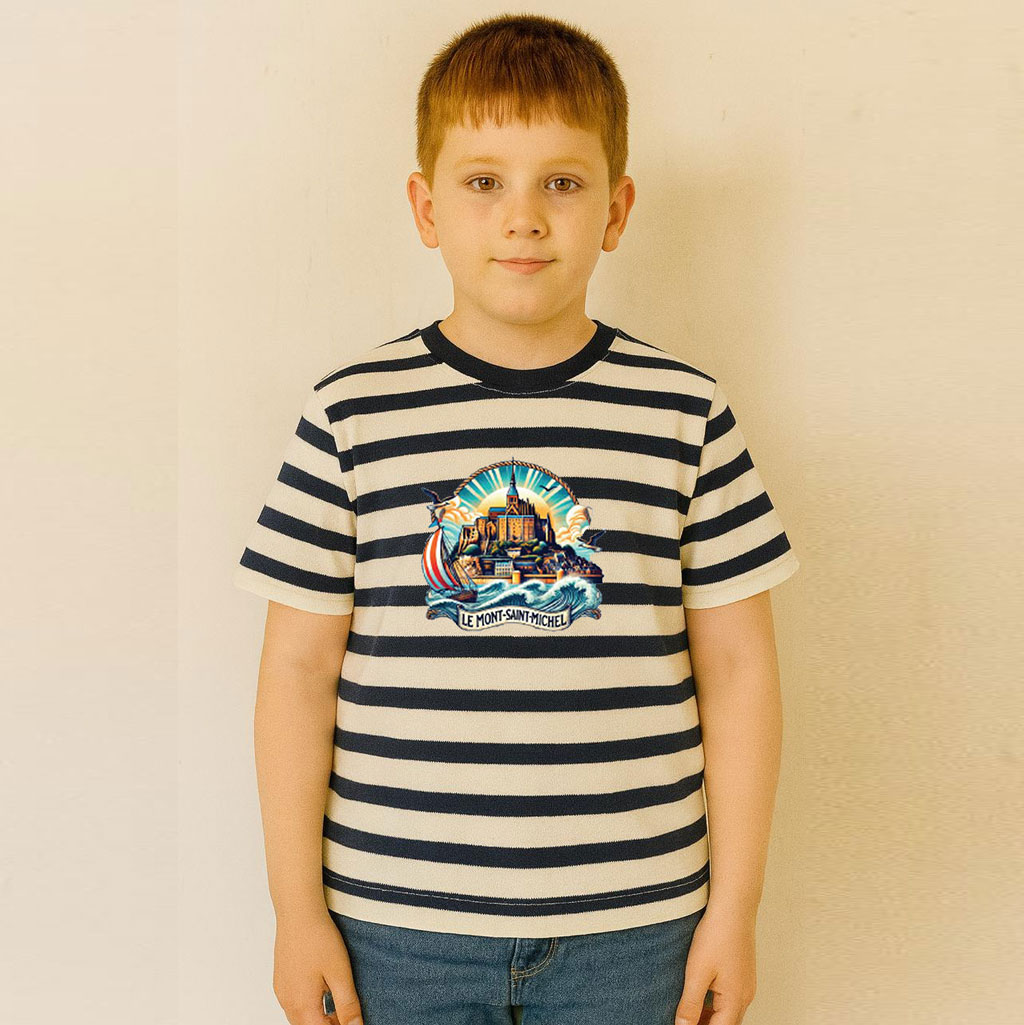 T-Shirt à rayures tricot Mont ST Michel Ref 19-3,  100% Coton avec les couleurs suivantes : Marine