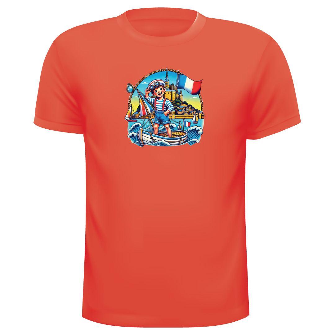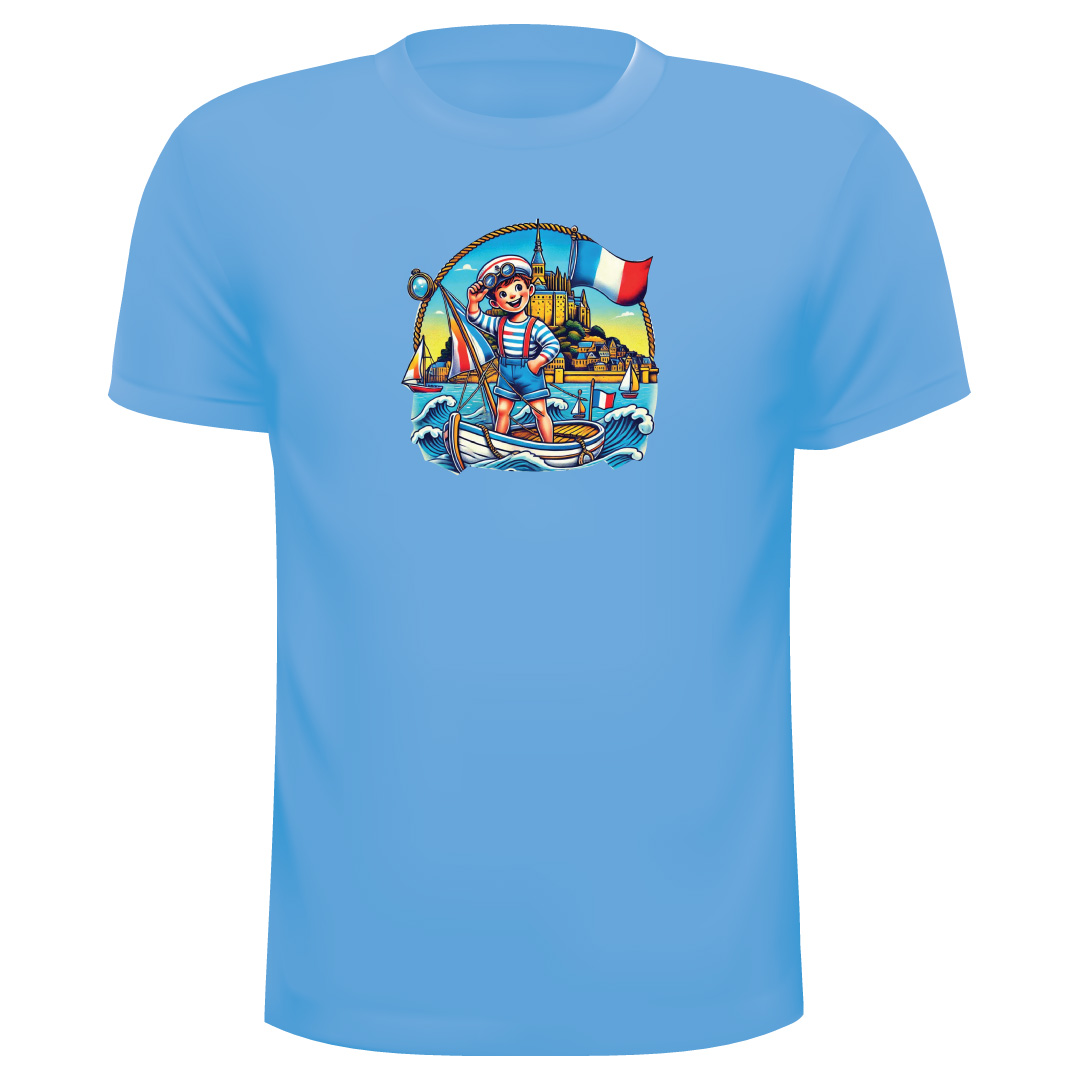T-Shirt Mont ST Michel Ref 6, 100% Coton avec les couleurs suivantes : Marine, Rouge, Turquoise, Ciel, Jaune, Orange
