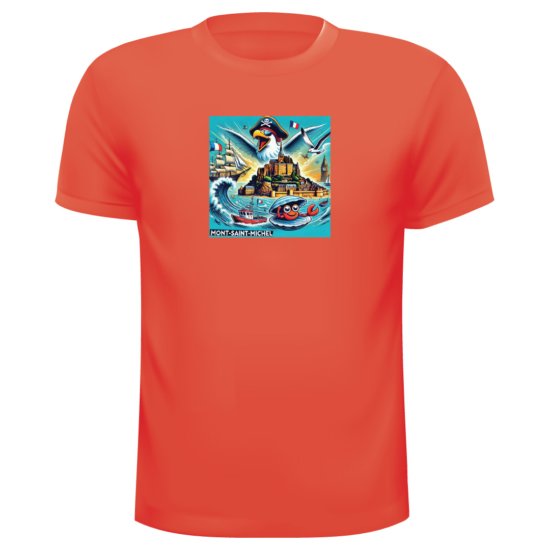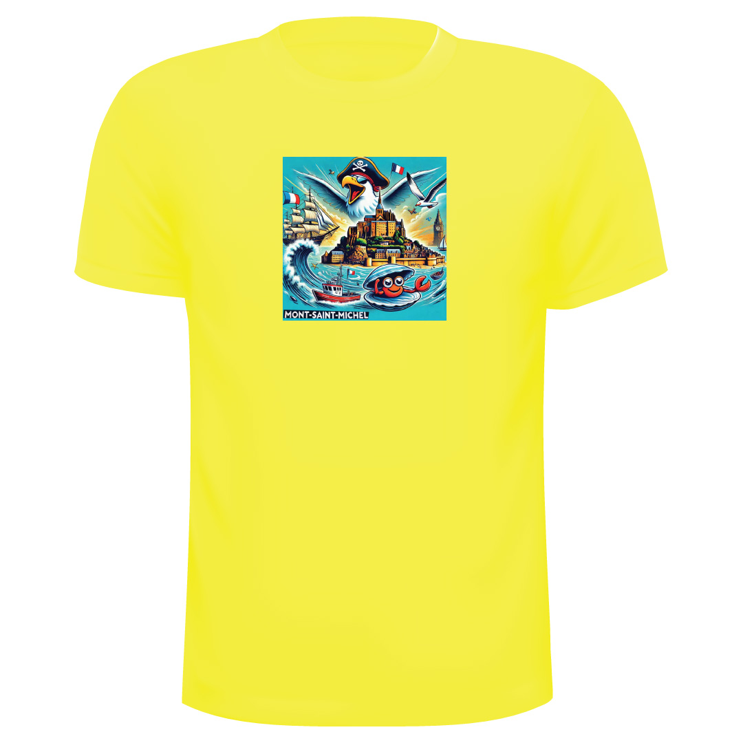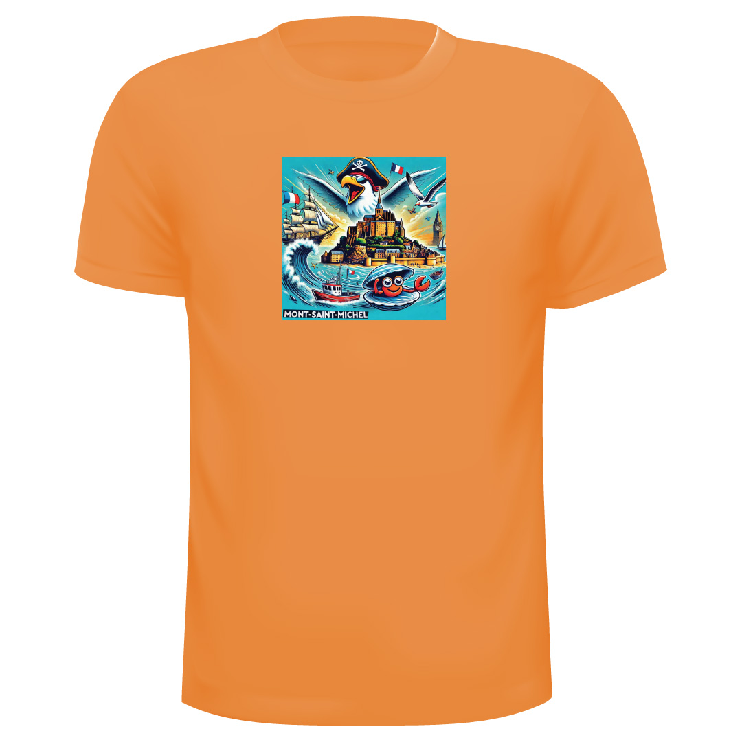 T-Shirt Mont ST Michel Ref 7, 100% Coton avec les couleurs suivantes : Marine, Rouge, Turquoise, Blanc, Jaune, Orange